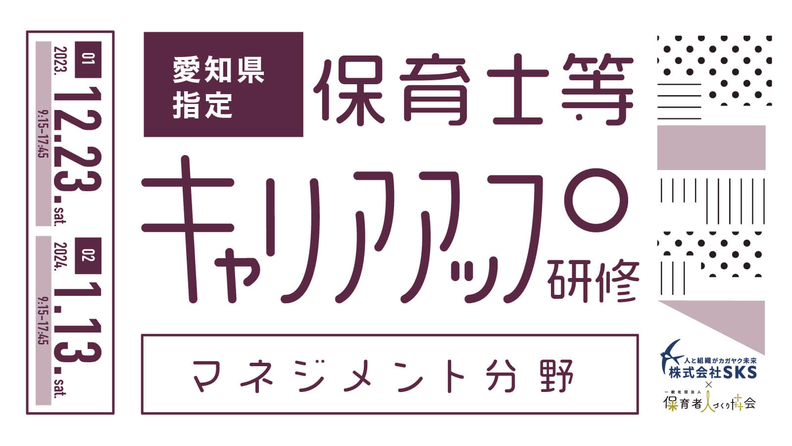 本研修は、愛知県から「保育士等キャリアアップ研修マネジメント分野」として認定を受けた講座です。
